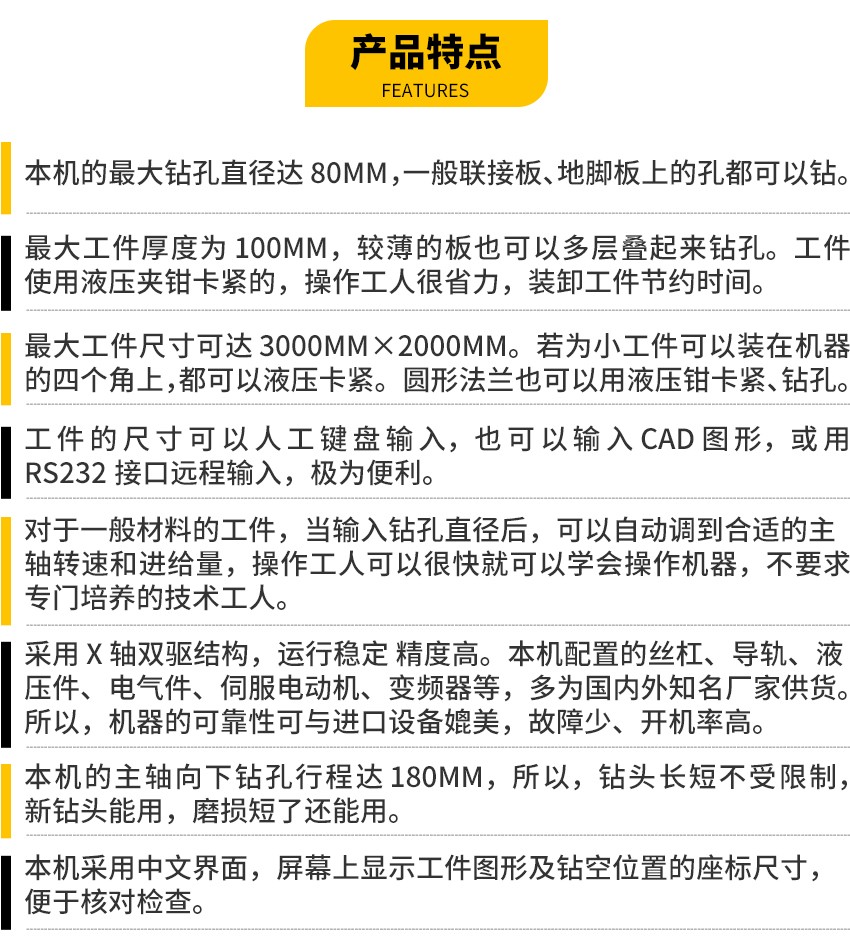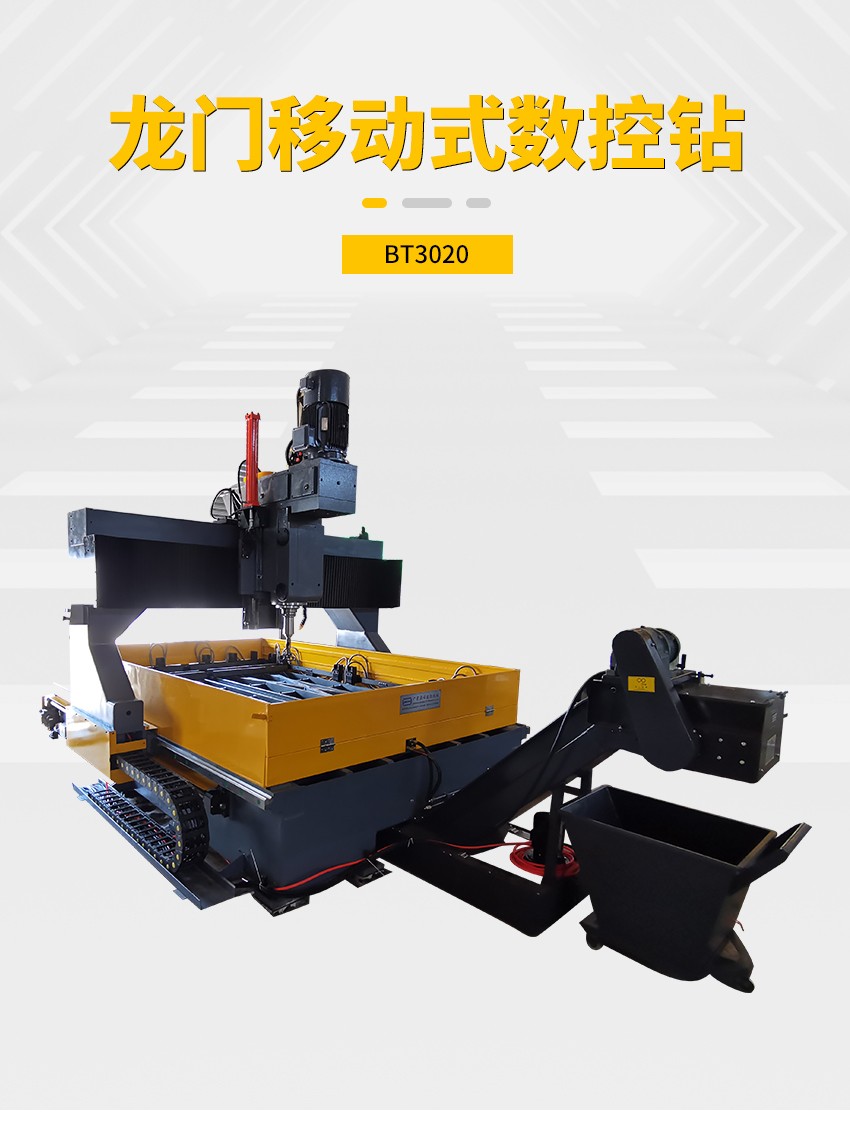 BT-3020 型龍門移動(dòng)式數(shù)控平面鉆床,用于在鋼板上鉆孔。加工的工件可以是鋼結(jié)構(gòu)建筑、橋梁、鐵塔上的聯(lián)接板,也可以是大的法蘭盤、環(huán)形類零件等。完全自動(dòng)的加工。高效率、高精度。